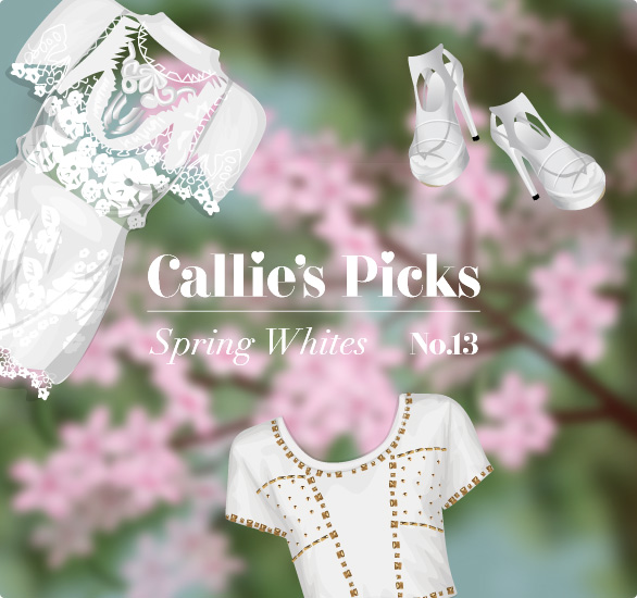 Na nasze skrzynki pocztowe dostarczono wiadomość, która zawiera reklamę najnowszej kolekcji Callie's Picks. Admini poczuli powiew wiosny, dlatego też w tym klimacie utrzymano tło obrazka. Bardzo mi się podoba - może to ze względu na to, że lubię biel, a ciemnozielone liście i różowe kwiaty na ich tle jeszcze bardziej to uwydatniają. Najmocniejszym punktem jest tu właśnie tło.